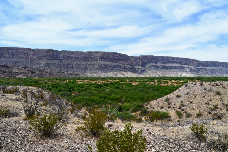 A view of the diverse ecology found in Big Bend National Park–the desert, fertile river valley, and mountains.