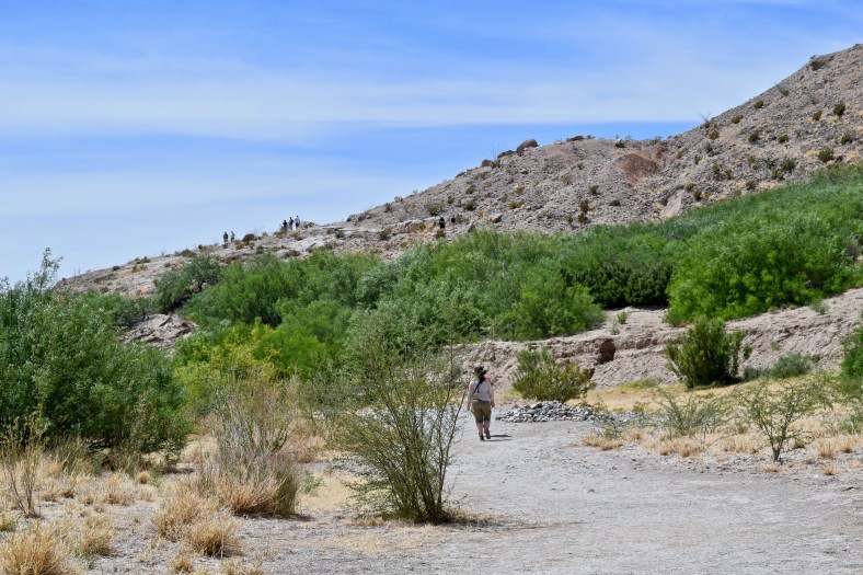 Hiker heading back up the Boquillas Canyon Trail as others start the descent.