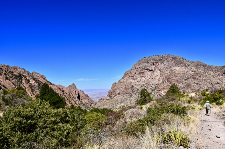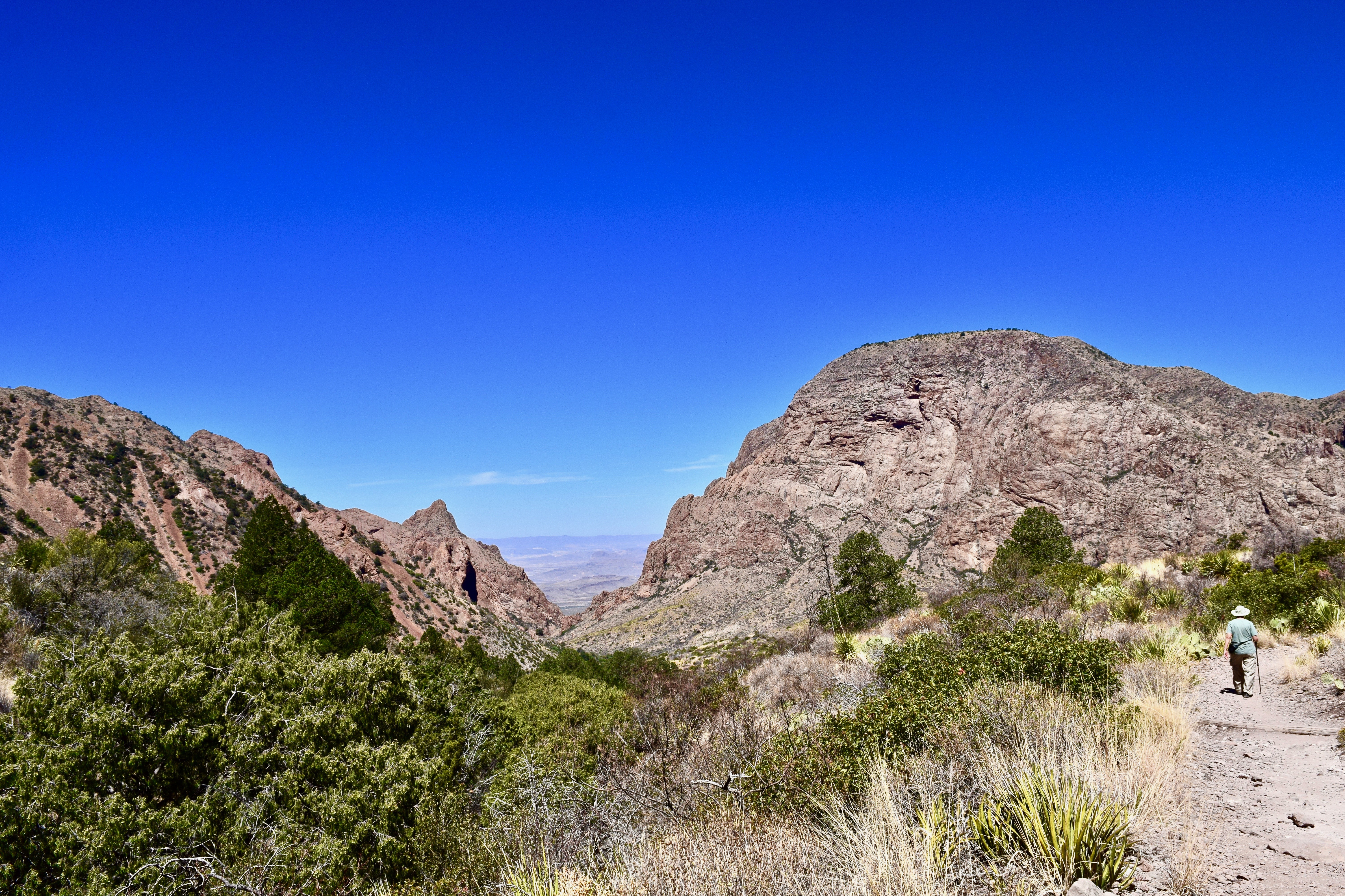 Lou Anne nearing the end of the Loop Trail with a view of The Window.