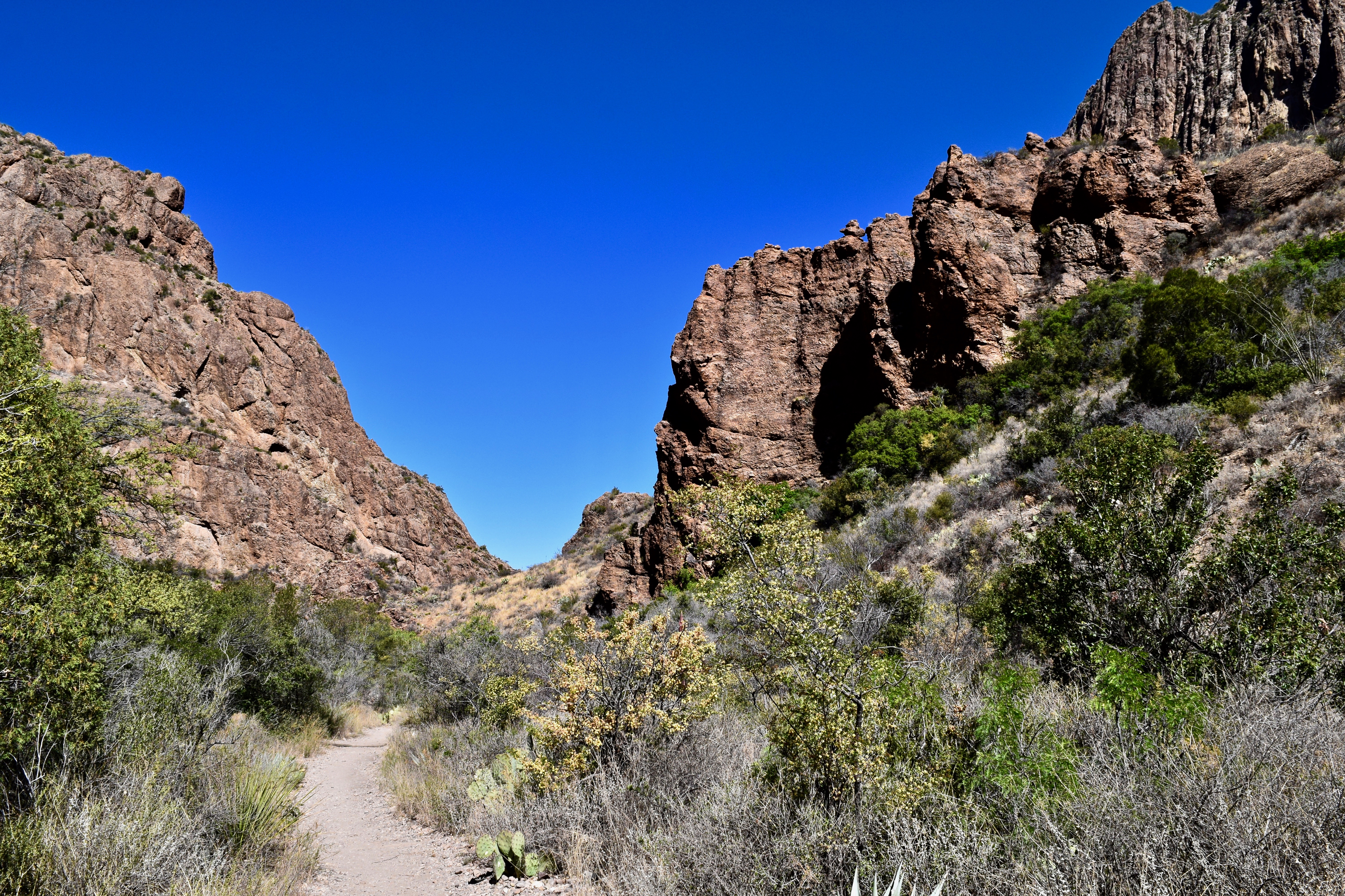 - The lower Santa Elena Canyon Trail plants, mountains, and sky offer an impressive array of colors and textures.