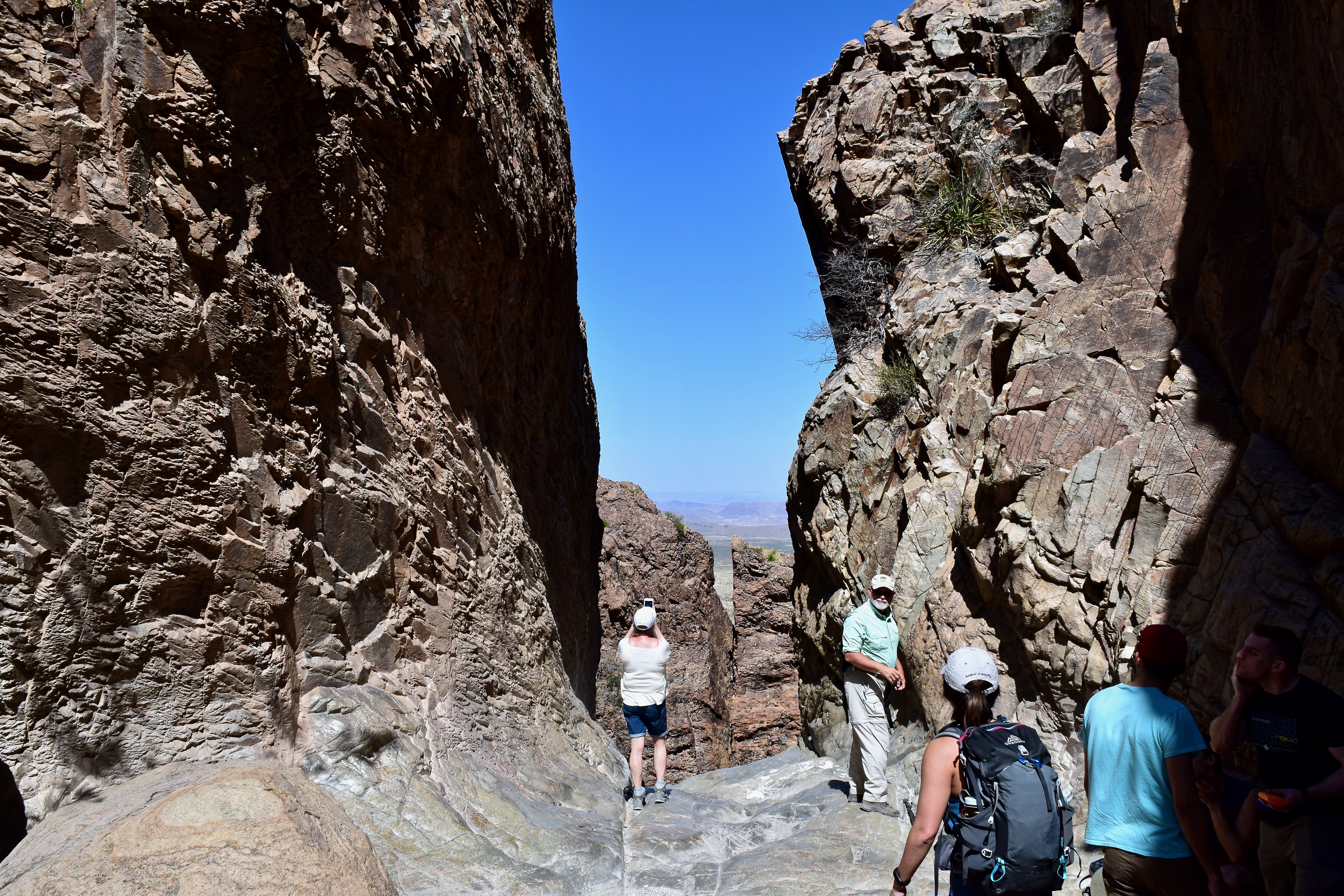 - Hikers entering and exiting the Santa Elena Canyon Trail. Luckily the ascent is at the beginning.