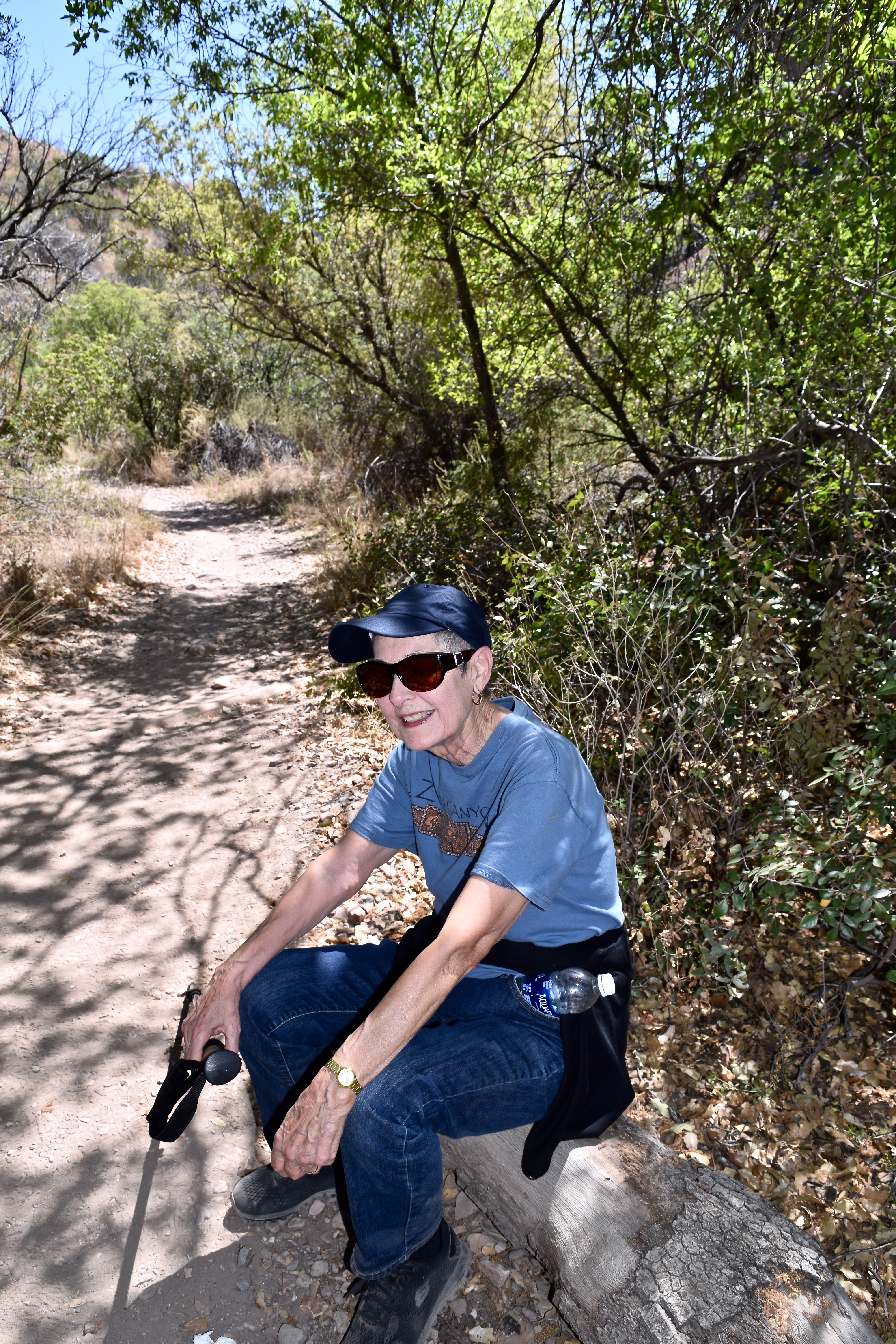 - Brenda ready to tackle the 1.9 mile Basin Loop. After the fall and knee injury all the other mountain trails are off limits.