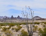 - The Mule Ears formation and the abundant ocotillo plant on the Ross Maxwell Scenic Drive.